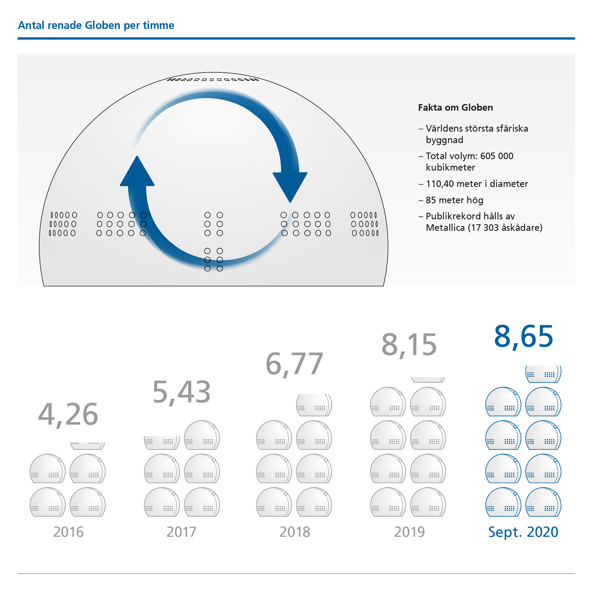 QleanAir Holding AB (publ) premiumleverantören av lösningar för rening av inomhusluft, ökade leveransen av ren inomhusluft till en volym motsvarande 8,65 (7,73) Ericsson Globe Arena per timme eller 3,77 (3,37) miljarder m3 renad inomhusluft per månad vid utgången av tredje kvartalet 2020 jämfört med utgången av tredje kvartalet 2019.